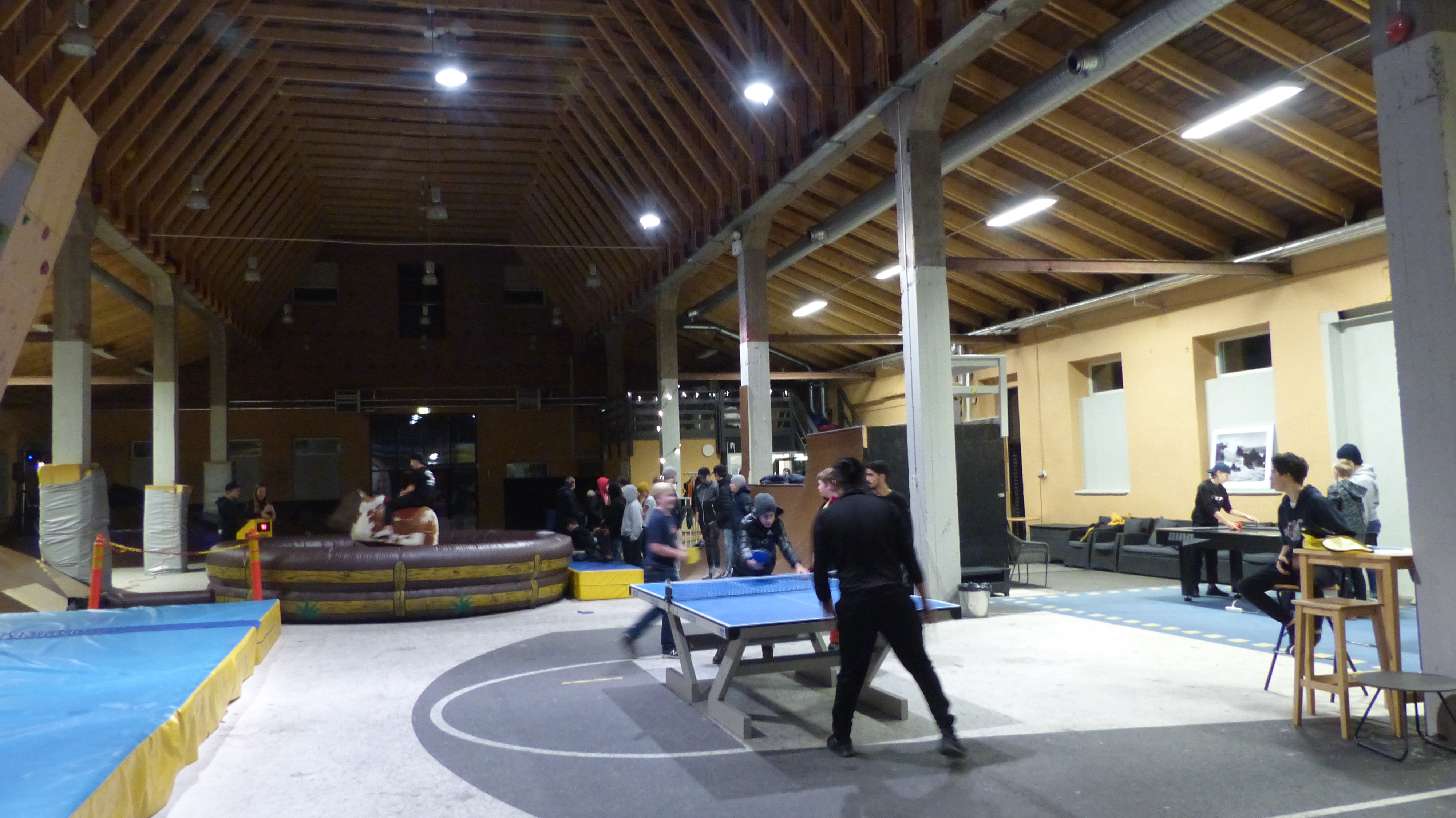Lokalen är imponerande med sin yta och takhöjd, ett gammalt magasin som efter ett medborgarförslag 2008 byggdes om av ungdomarna själva – med hjälp av fritidsledare – till ett hus för actionsporter, som det fanns ett tryck för: skateboard, inlines, bmx, klättring och sedan kickbike (fordom kallad sparkcykel).