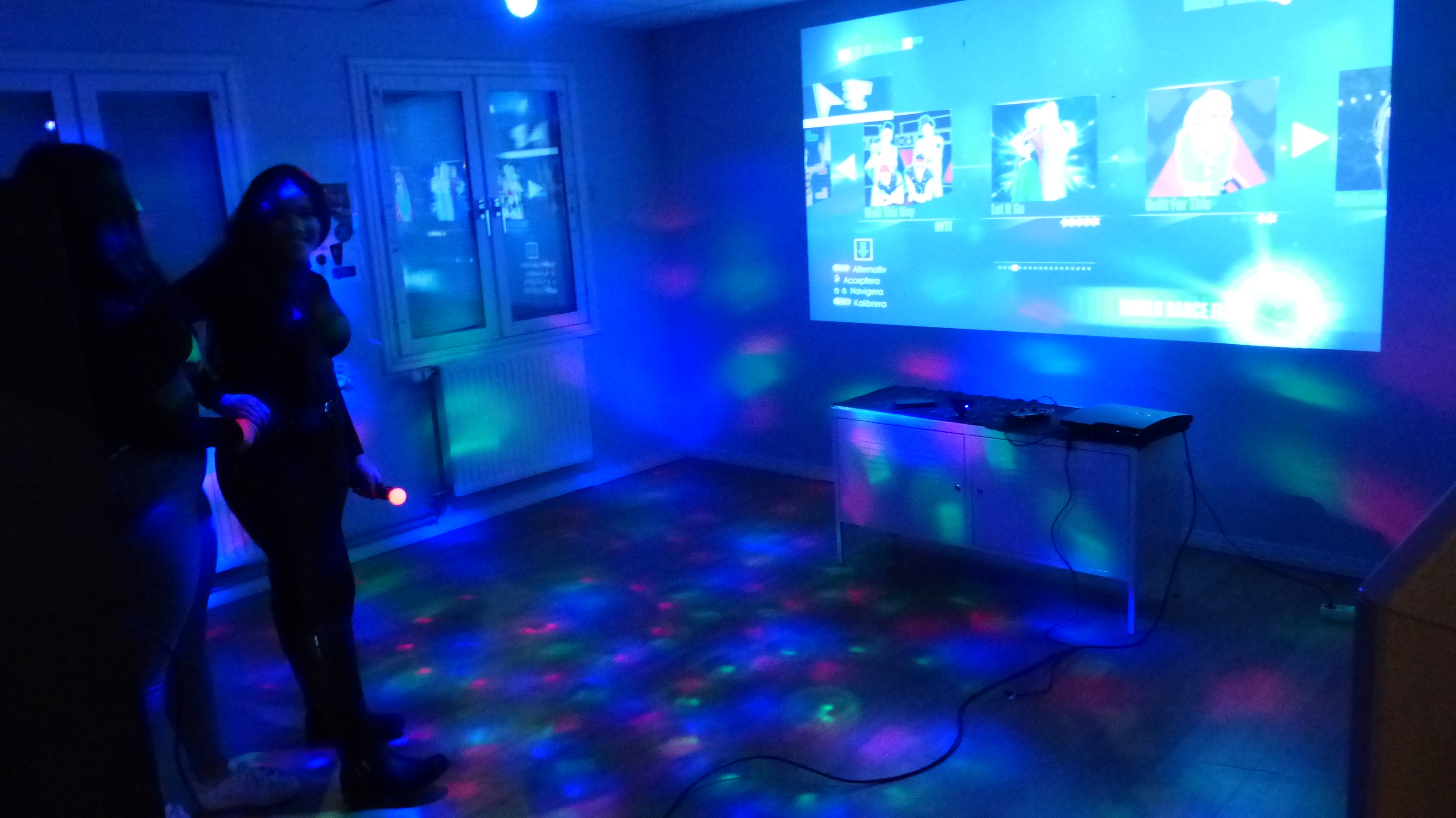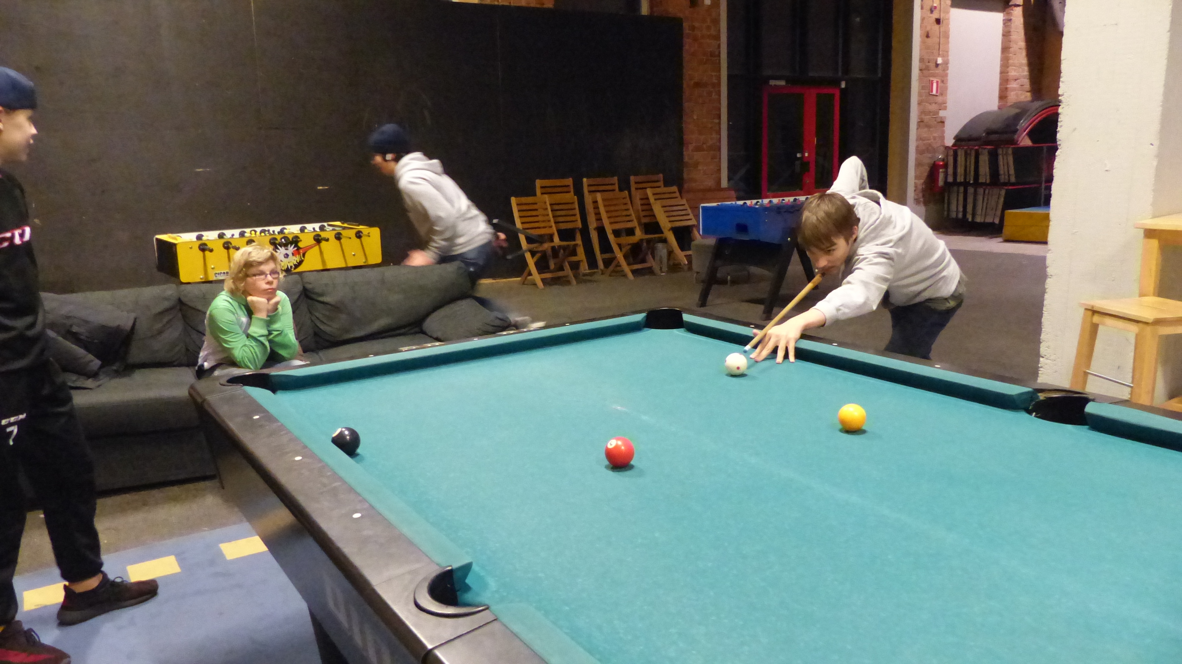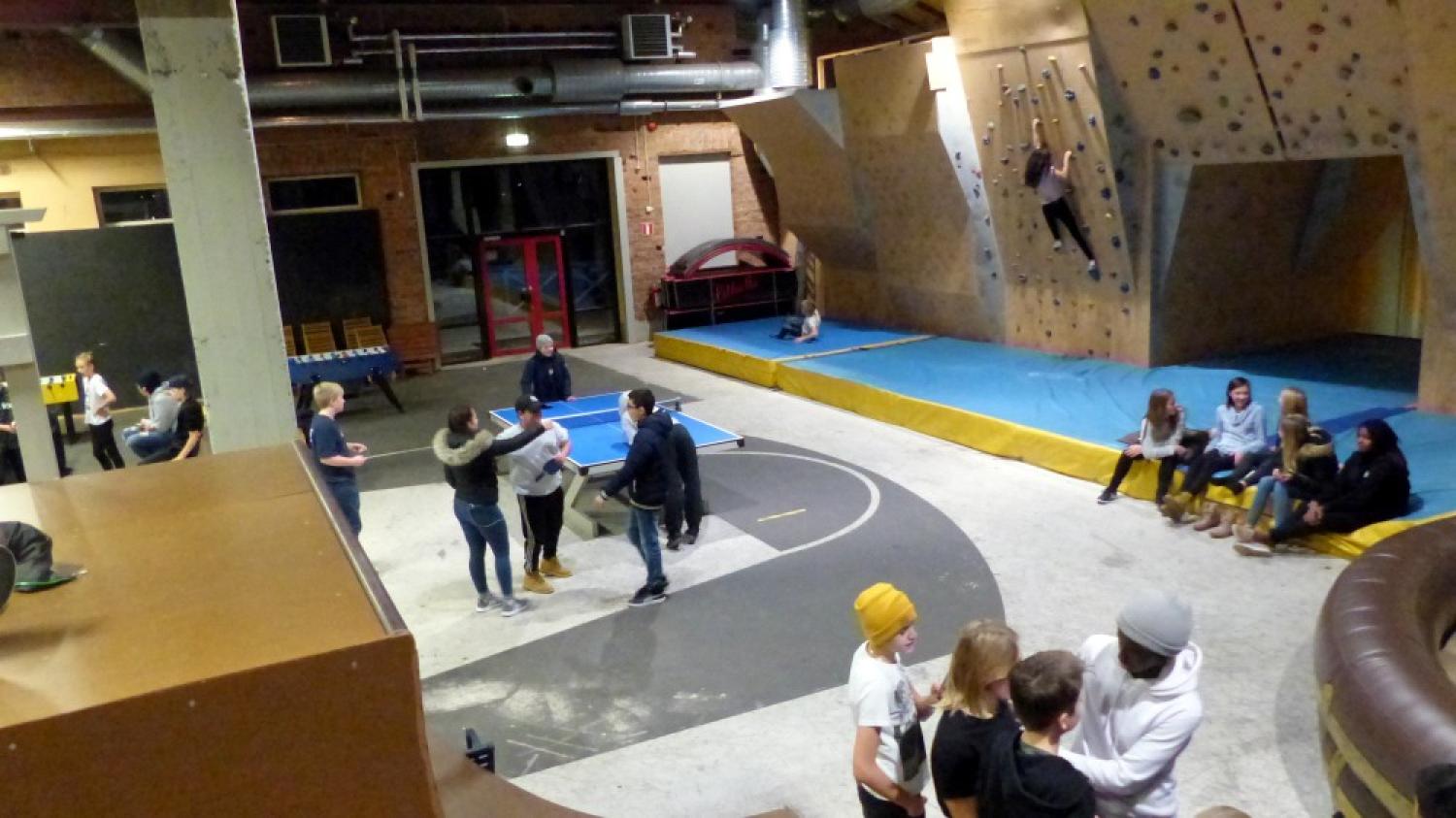 Men Aktivitetshuset har också blivit fritidsgården Kvisten, som flyttade hit när Vialundskolan byggdes om och den här kvällen syns inga actionsporter utan killarna spelar pingis, biljard och några tjejer testar en dansmaskin. Och så den elektriska tjuren som kastar av sina ryttare i snabb takt.