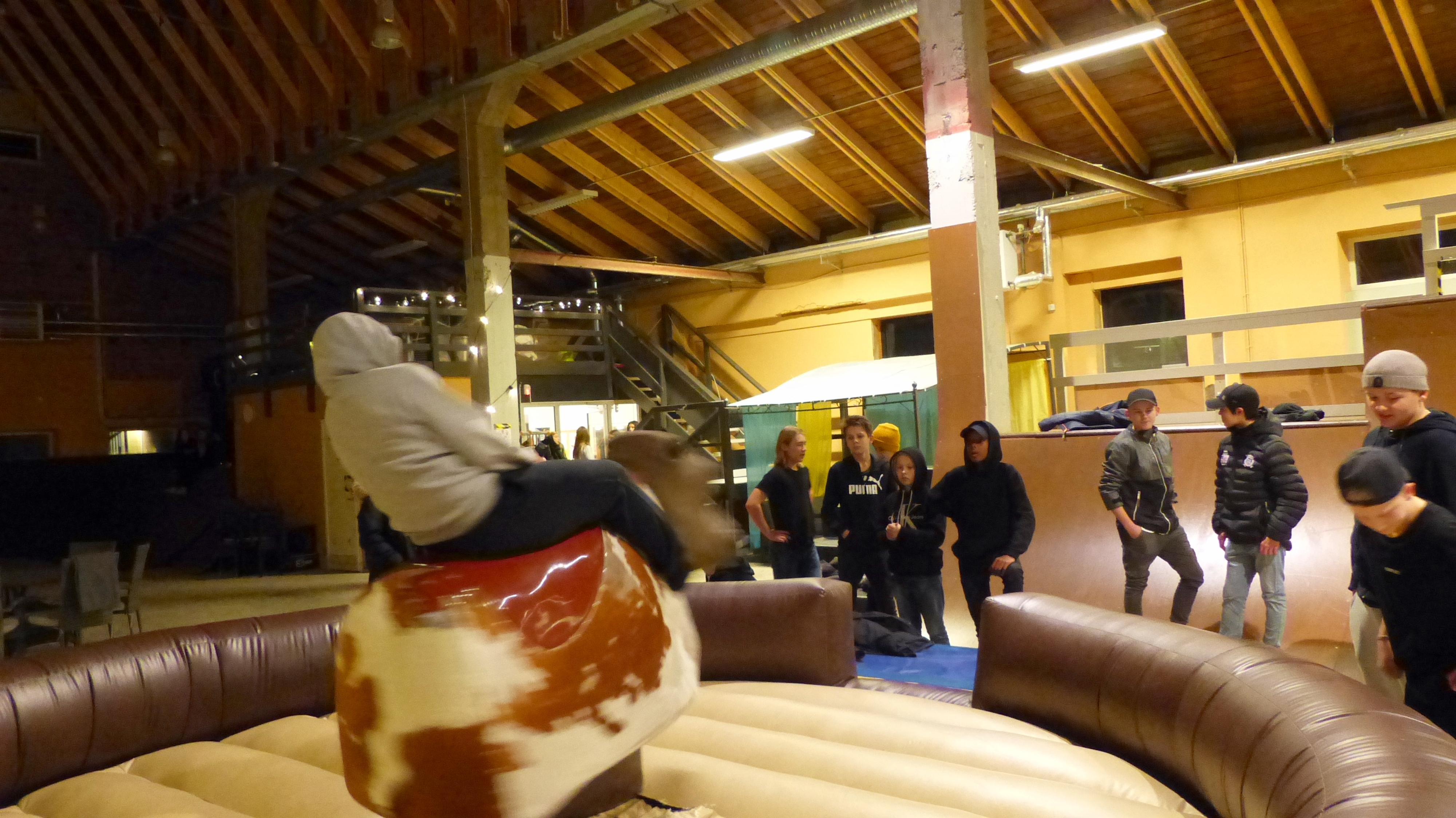Klockan hade redan blivit 18 på fredagkvällen och gänget stod och dunkade på porten till Aktivitetshuset. Därinne väntade en snurrande tjur, en extra attraktion den här sista kvällen i huset som efter mycket snurr måste bomma igen.