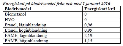 Samtidigt höjs energiskatten på hög- och låginblandad etanol och biodiesel (FAME).