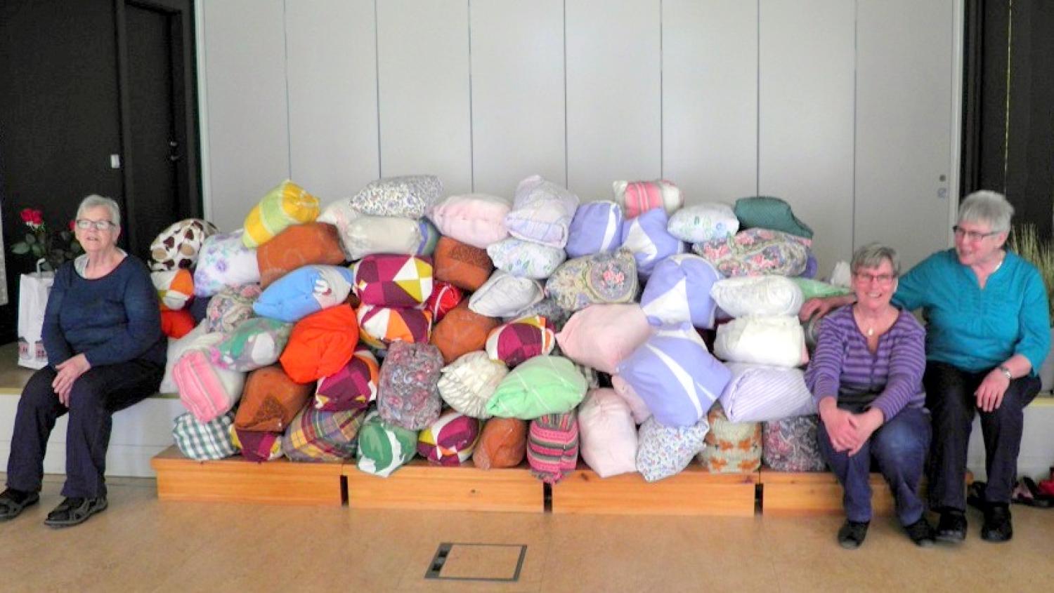 - Det är lite som en syjunta. Vi arbetar var och en hemma hos sig när vi inte träffas, berättar Carina Grönkvist som halkade in i projektet efter att det hållit på något år i kyrkans regi.