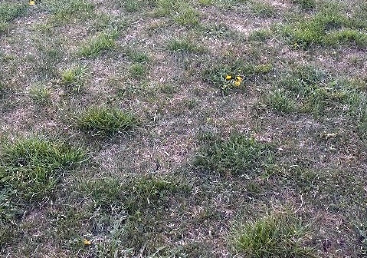 Marken på Kumlaby fältet är väldigt ojämn och det syns väl var dräneringen ligger för där har marken sjunkit. Gräset växer ojämnt och på vissa ställen är det mest tuvor och maskrosblad.