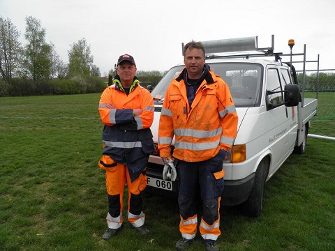 - Vi tycker det är tråkigt att jobba med en anläggning i det här skicket. Men för att få ordning på gräsmattan krävs nog en stor maskin som vertikalskär och sen ordentligt med sand, säger Micke och Magnus.