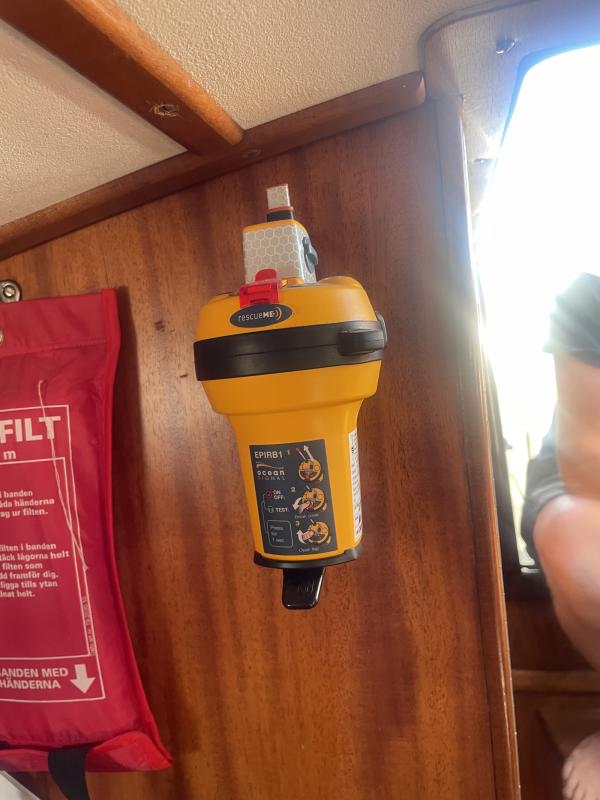Den här grejen är en nödsändare. När den utlöses är det sista utvägen. Då får paret vara beredda att överge sin båt.