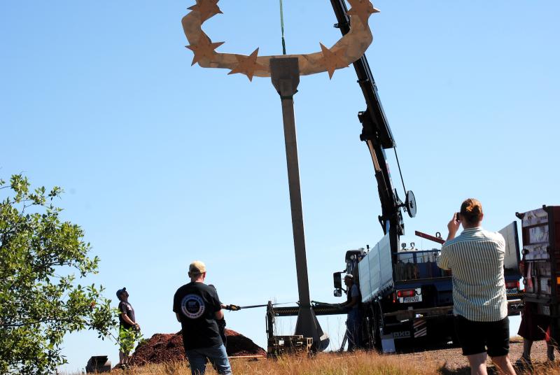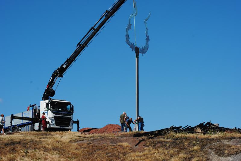Under tisdagen lyftets det konstverk som ska ersätta Lars Vilks Waaall på plats. Konstnären var inte själv på plats, men väl kommunalrådet Katarina Hansson (S) och Anders Fasth, projektledare för Konst på hög.
