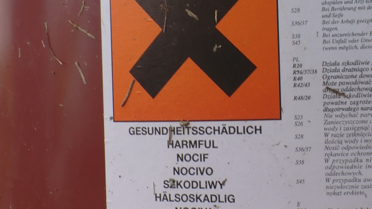Hälsoskadlig står det på åtta olika språk på de kvarlämnande tunnorna vid lekplatsen.