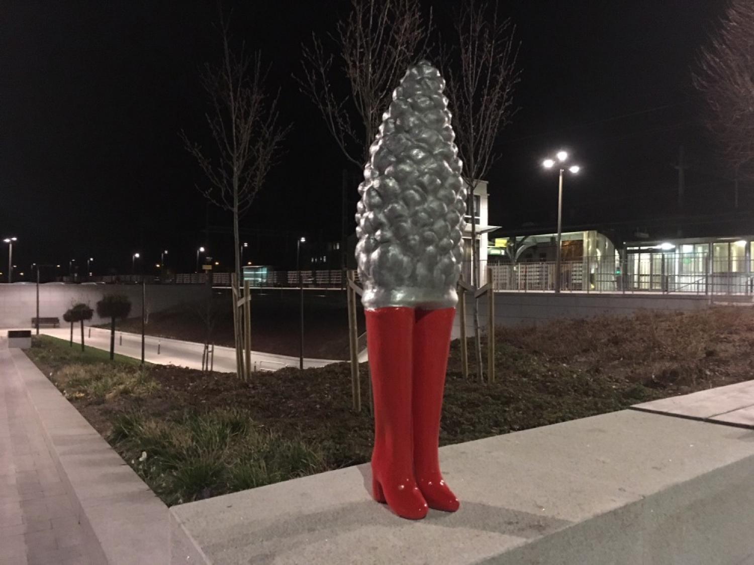 Kumlas senaste konstverk på Kvarntorpshögen går under namnet Mr Majestät, det kom på plats i onsdags. Men kvällen/natten till måndag har någon ryckt loss konstverket och kastat ner det längs högen.