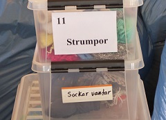Kläder som blir över sorteras till nästa hjälpsändning i höst.Så därför plockades det på löpande band ihop omsorgsfulla paket i Kumla innehållande badlakan, handduk, tvättlapp, barntvål, tre tygblöjor, två stickade blöjbyxor, två omgångar babykläder i olika storlek; stickade tröjor, mössor, vantar - och ett gosedjur. Allt sammanvirat med säkerhetsnålar i en filt eller tygväska.