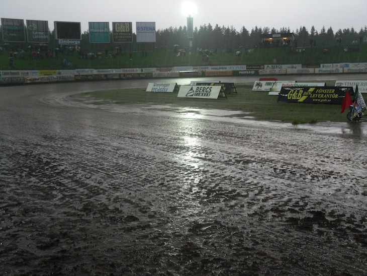 - Bara det skulle sluta regna så var jag inte orolig, jag vet att de har bra banpersonal och resurer här nere i Mållila, sade Dalle Andersson-Bäckström om ovädret.
