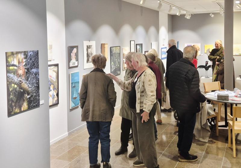 Under lördagens vernissage medverkande ett antal konstnärer aktuella i Konstrundan och en rad besökare. Callil Olhsson, som driver Ateljé Hönshuset i Zinkgruvan, var med och startade Konstrundan när det begav sig för 30 år sedan och hade fått i uppdrag att inviga utställningen med ett tal.
