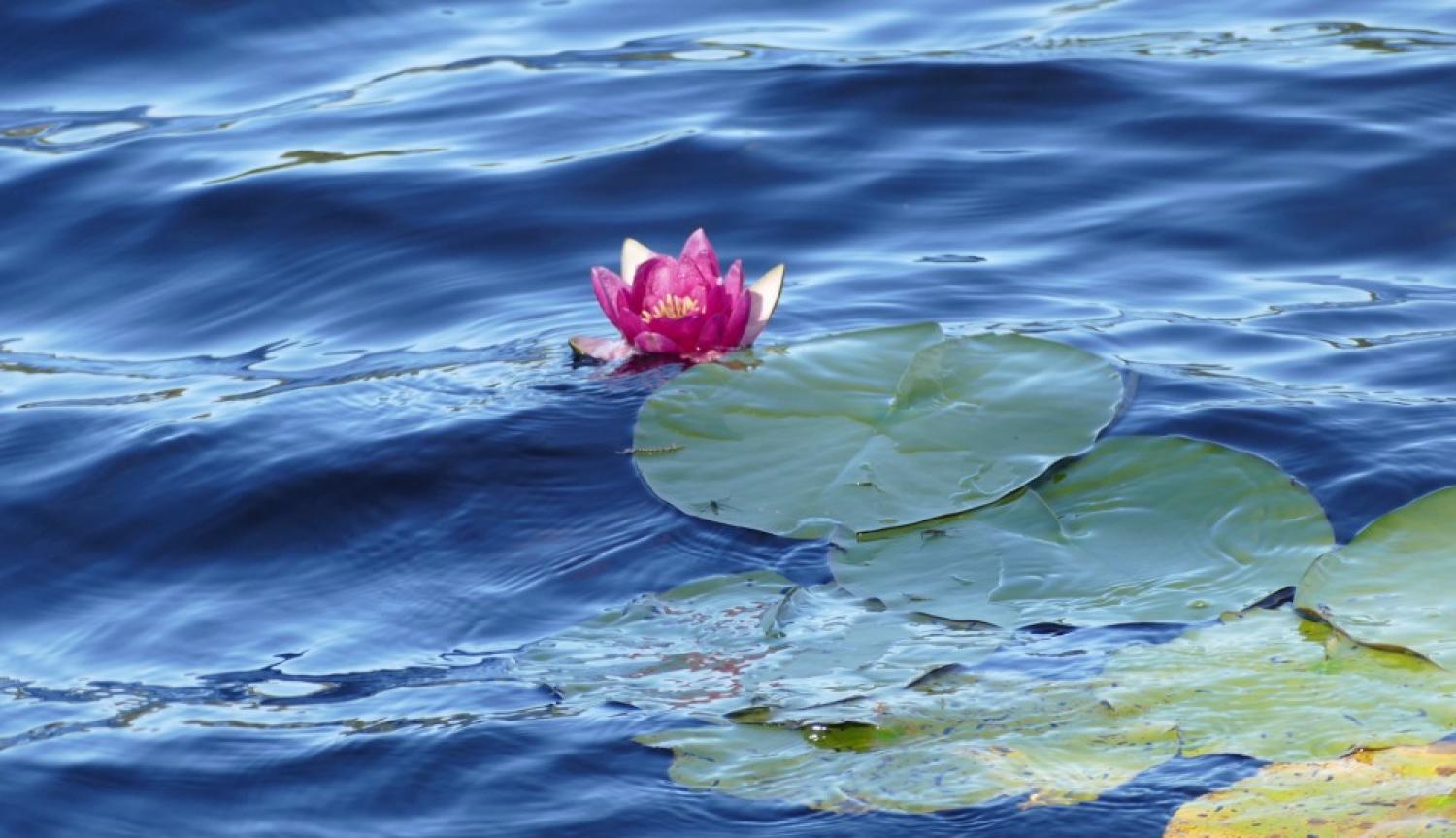 För den som trodde att sjön var som ett hav av röda näckrosor så här års blir det lite antiklimax. Jag får gå kanske en kilometer längs sjöns östra sida innan jag ser dem, ett fåtal vackra, röda blommor som flyter ute i sjön. Vill man komma nära är det bra att ta med kikare, eller teleobjektiv på kameran.Totalt hittar jag kanske ett tiotal röda näckrosor.