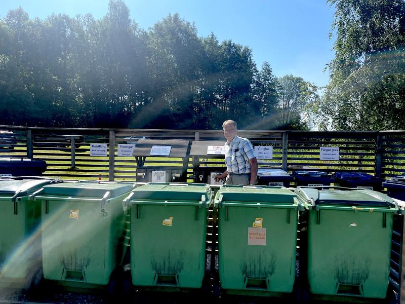Hans-Olof ser över återvinningen vid Aspa båtklubb.