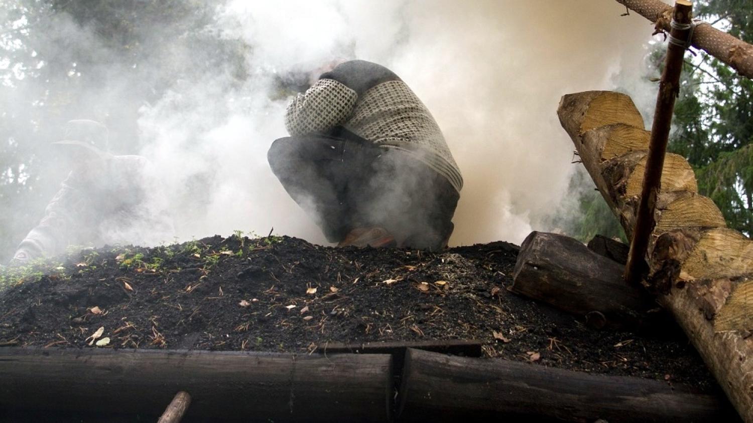 Mycket jobb bakom den färdiga kolmilan innan den ska brinna och pyra för att producera de allra finaste träkolen för grillen.- Det får inte brinna i milan, för då blir det inget kvar, förklarar Lars-Göran Holmström. Meningen med en kolmila är såklart att det ska bli kol; därför måste man reglera syretillförseln inne i milan så att det kolar, inte brinner.