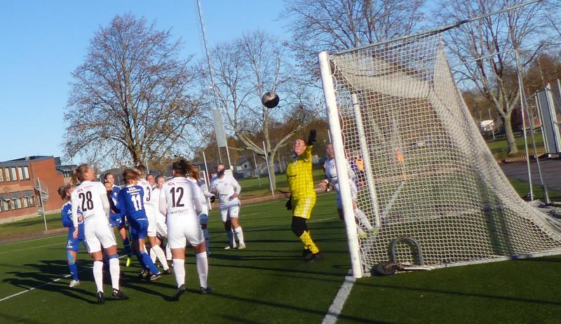 IFK tog fortsatt grepp i andra halvlek, fortsatte offensivt med bra självförtroende, spelade sig fram till flera chanser medan motståndarna inte hade några anfall att tala om. 2-0 kom därför inte som en förvåning efter en hörna, snyggt slagen damp den ner i ett Hallsbergskluster och så klart på Karoline Bergman (tre mål förra matchen) men studsade inte på skallen utan på axeln vilket ju går lika bra.