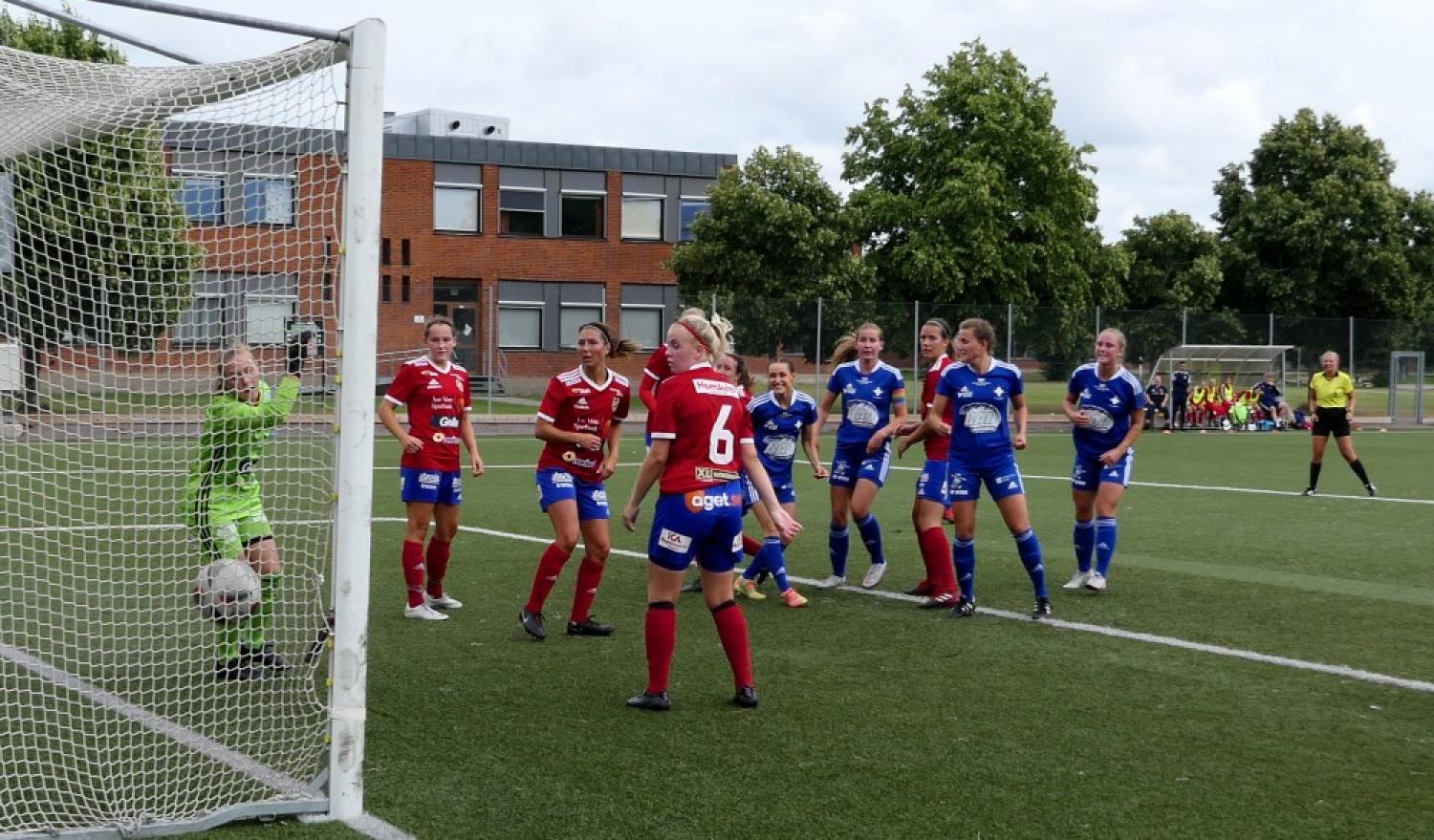 Man kan väl säga att matchen stod och vägde. Det fanns risk för ett slumpmål från bortalaget. Istället var det Karoline Bergman som frälste hemmapubliken med en distinkt nick på en hörna i den 93:e matchminuten. Jubel och glädje och sorgsna västgötskor.