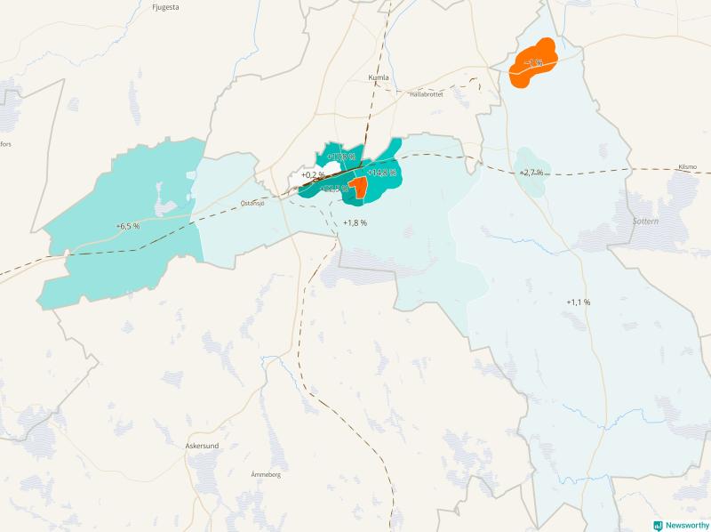 | Vretstorp-Viby-omland | 1 518 | 1 616 | +98 | +6 % ▲ |