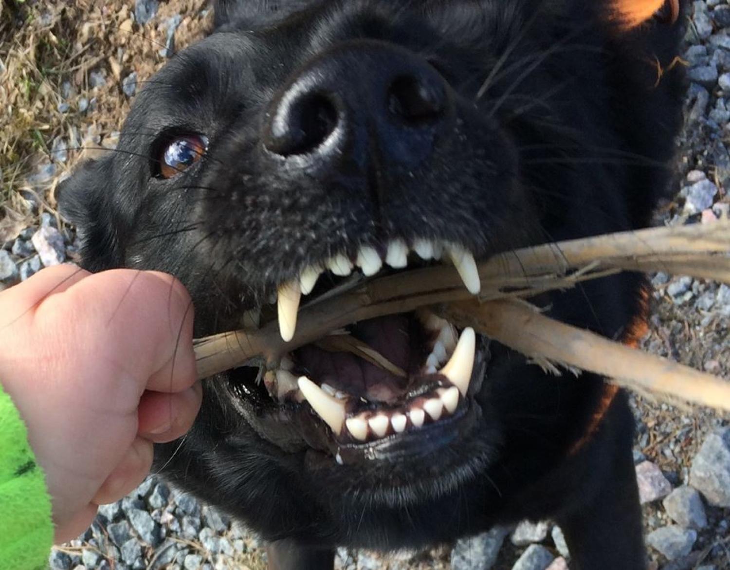 Efter bara en liten stund undkommer dock den först attackerade hunden.