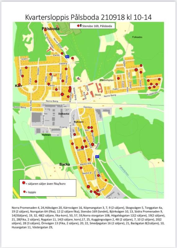 – Det blev lite större än jag räknat med. Det är som sagt mer än 60 säljare, men på flera ställen står flera säljare på samma adress. Det är alltså inte 60 platser, men kanske 30 På några ställen kommer det säljas varmkorv och fika.