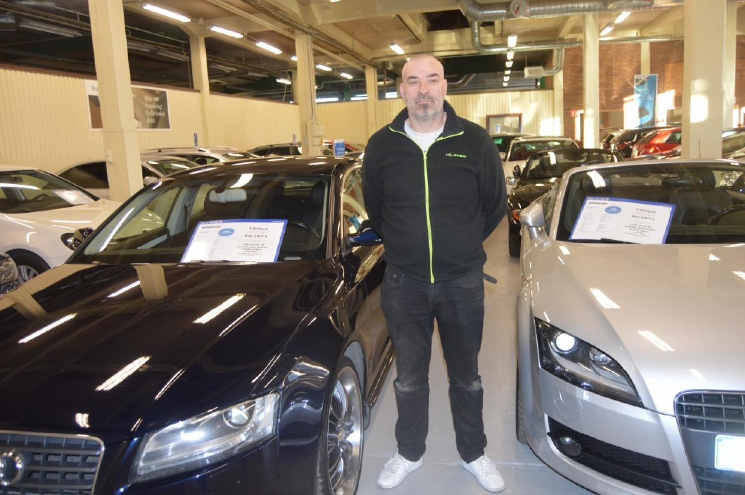 Peder Holmberg är en av tre anställda på Nollnitton Bilar AB. Foto: Anders Björk