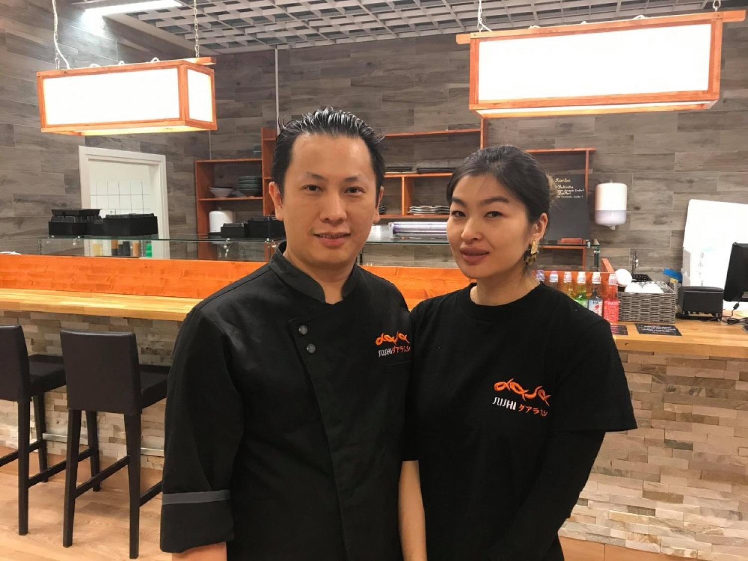 Tom Gerel och Nina Bodarch jobbar på nyöppnade Dala Sushi i Hallsberg. Foto: Anders Björk