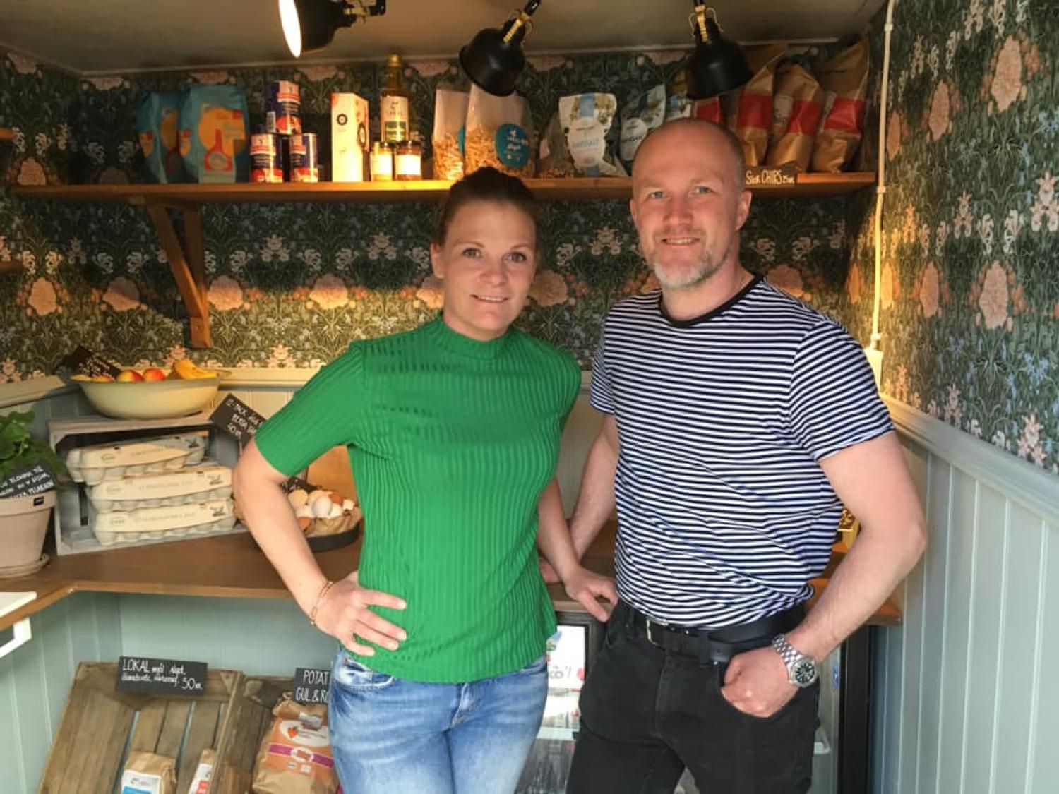 Anna och Niklas Edgren i sin lilla lanthandel. En ombyggd container som de inrett. Foto: Anders Björk