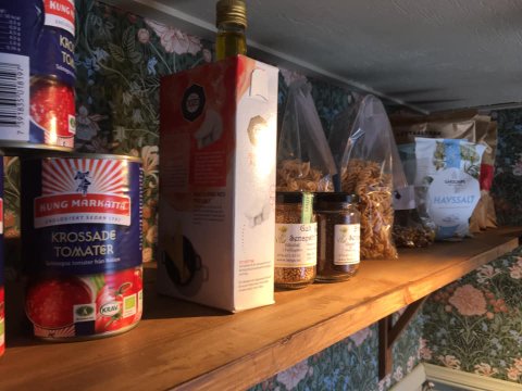 Läget med corona har dock kraftigt bromsat även deras jobbvardag, vilket nu gjort att de fått tid att öppna en liten lanthandel på sin tomt. Handeln är en ombyggd byggcontainer som designats om på en vecka och hade invigning i fredags.