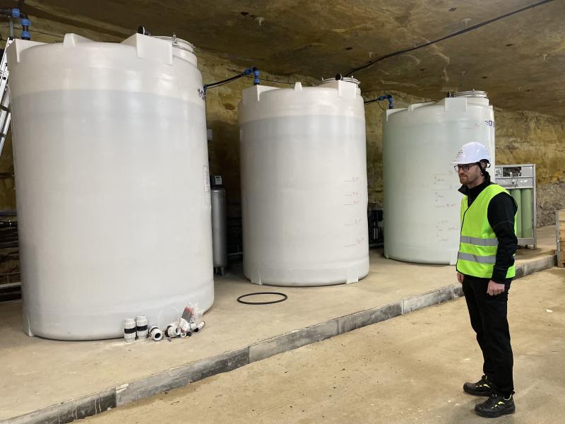 Oscar Uhrström vid vattenreningsanläggningen. Vattnet kommer direkt från Tisaren. Foto: Henrik Östensson