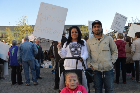 Solen sken över Kumla Torg och uppskattningsvis 300 personer fanns där för att visa sitt stöd till den utvisningshotade familjen och lyssna till de tal som hölls.