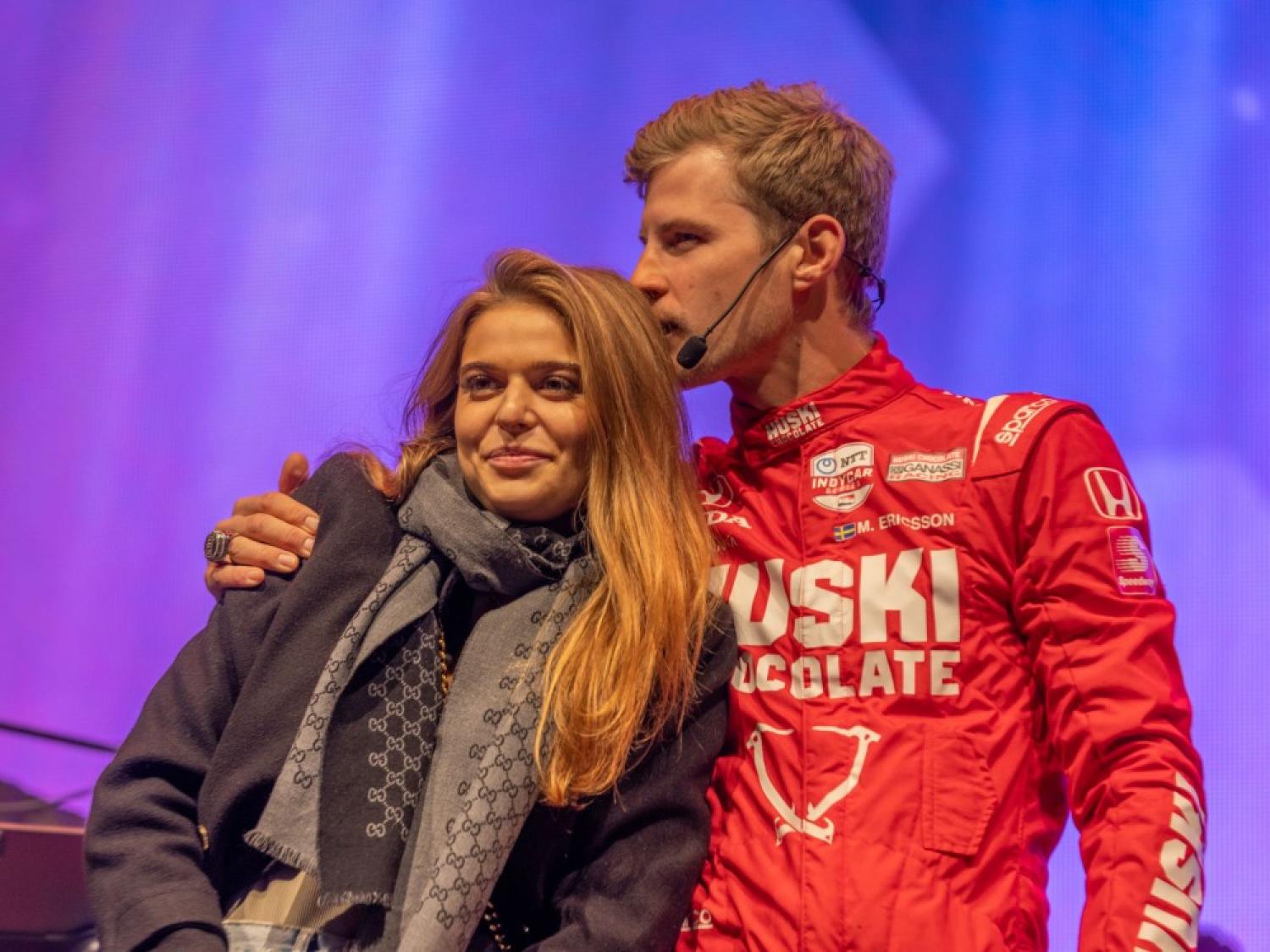 Marcus Ericsson med flickvännen när han besökte Kumla inför ett välfyllt torg i november. Foto: Erik Widlund