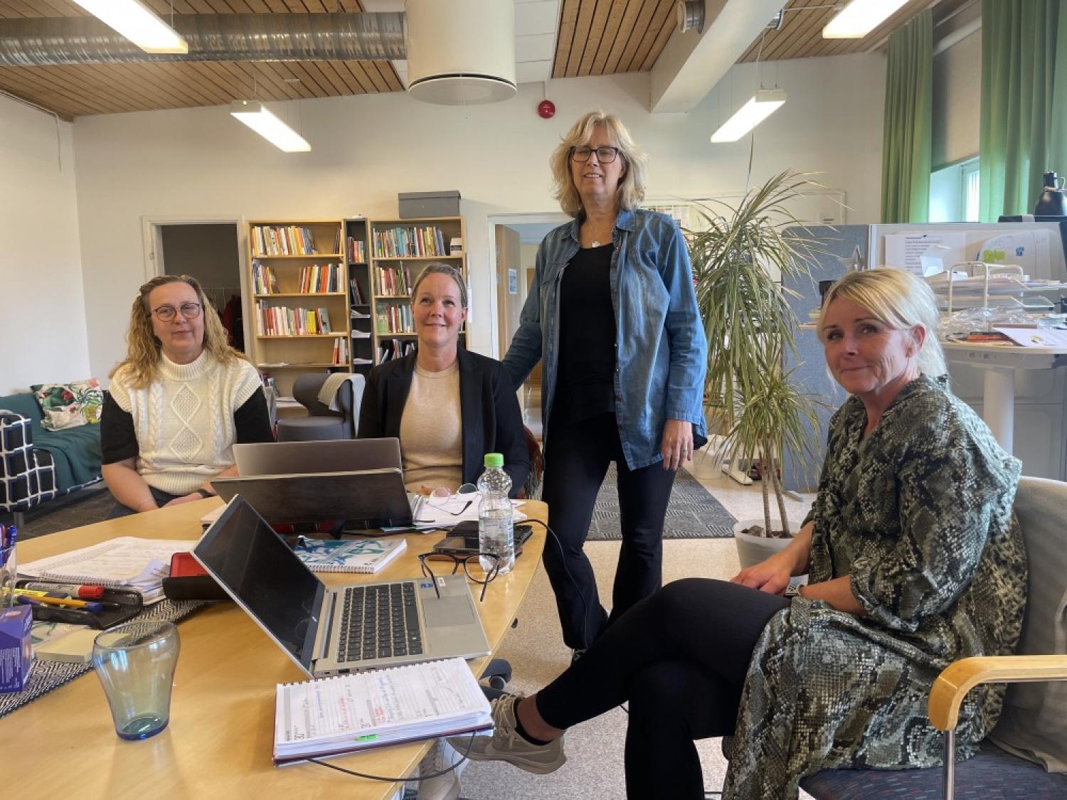 Här är gänget som ska vidareutbilda Kumlas förskolepedagoger. Anette Gadde, Malin Forsberg Mattsson, Kristina Collén, och Ann-Sofie Hagelin. Deltar i jobbet gör också Susanna Blagus Sandberg. Foto: Henrik Östensson.