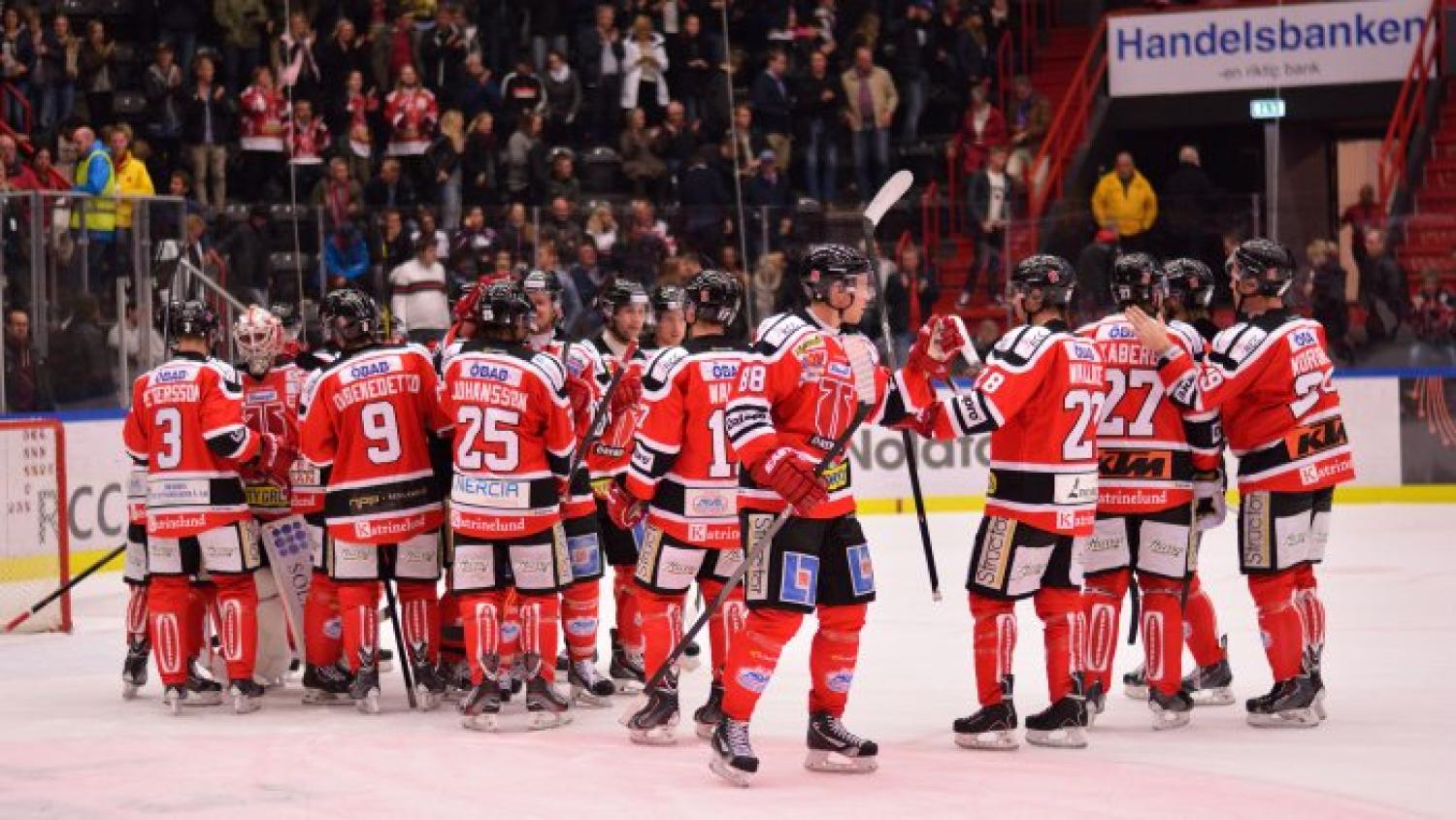 Örebro HK jublar efter en seger. Laget stöttas av Svenska Kyrkan i Kumla. Pengar som bör investeras i lag från kommunen istället, anser Siv Olsén. Foto: Orebrohockey.se