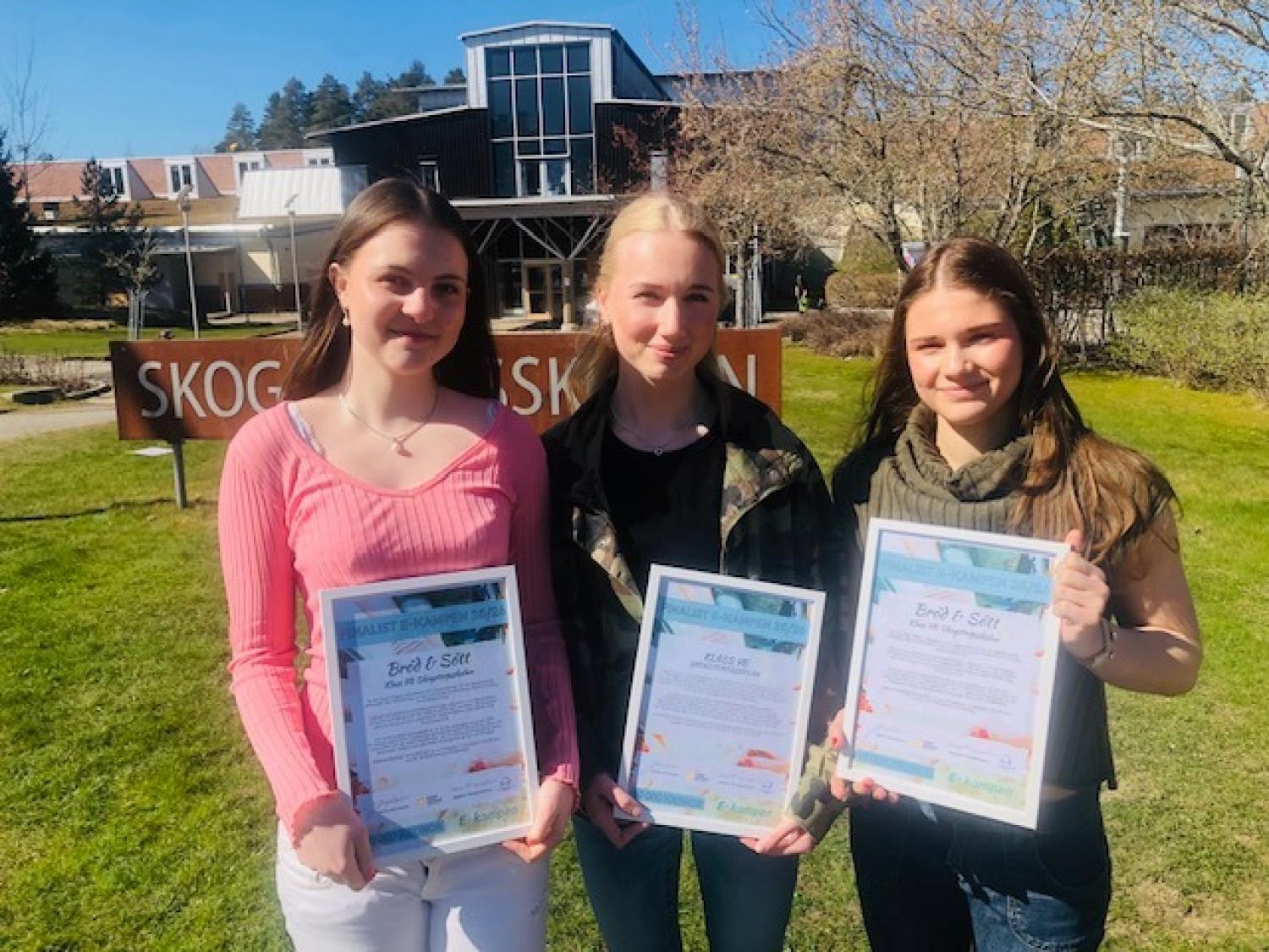 Alma Folkesson, Zelda Lundblad och Selma Sakambet med de diplom de fick under måndagen. Foto: Anders Björk