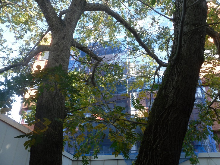 Vårdträdet på innergården, som i en ask.