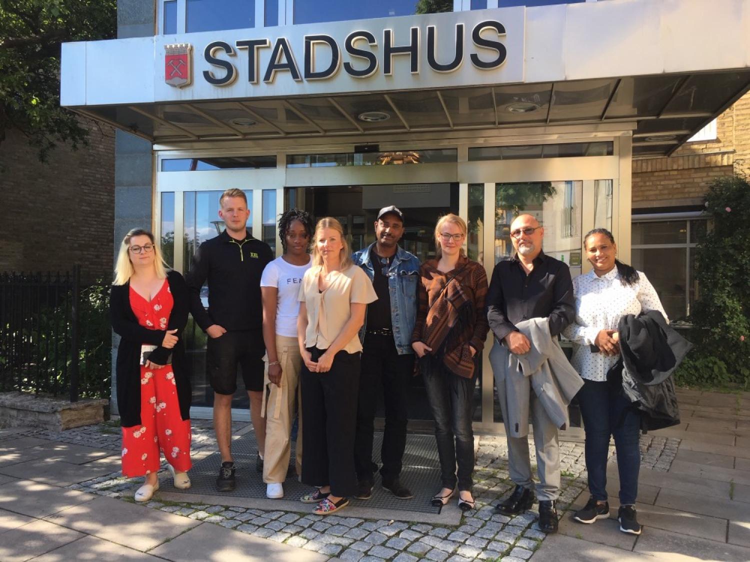 Personal från förskolan Fjärilen och några föräldrar tog sig till Stadshuset under fredagen för att protestera. Foto: Anders Björk