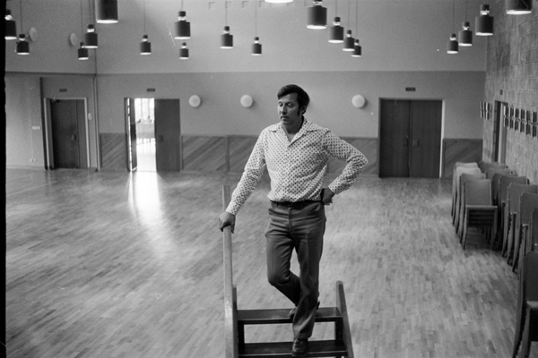 Året är 1970 och Arne Andersson var då föreståndare hos Folkets Hus. Bild tagen inne i Husaren. Foto: Kumla kommuns bildarkiv.