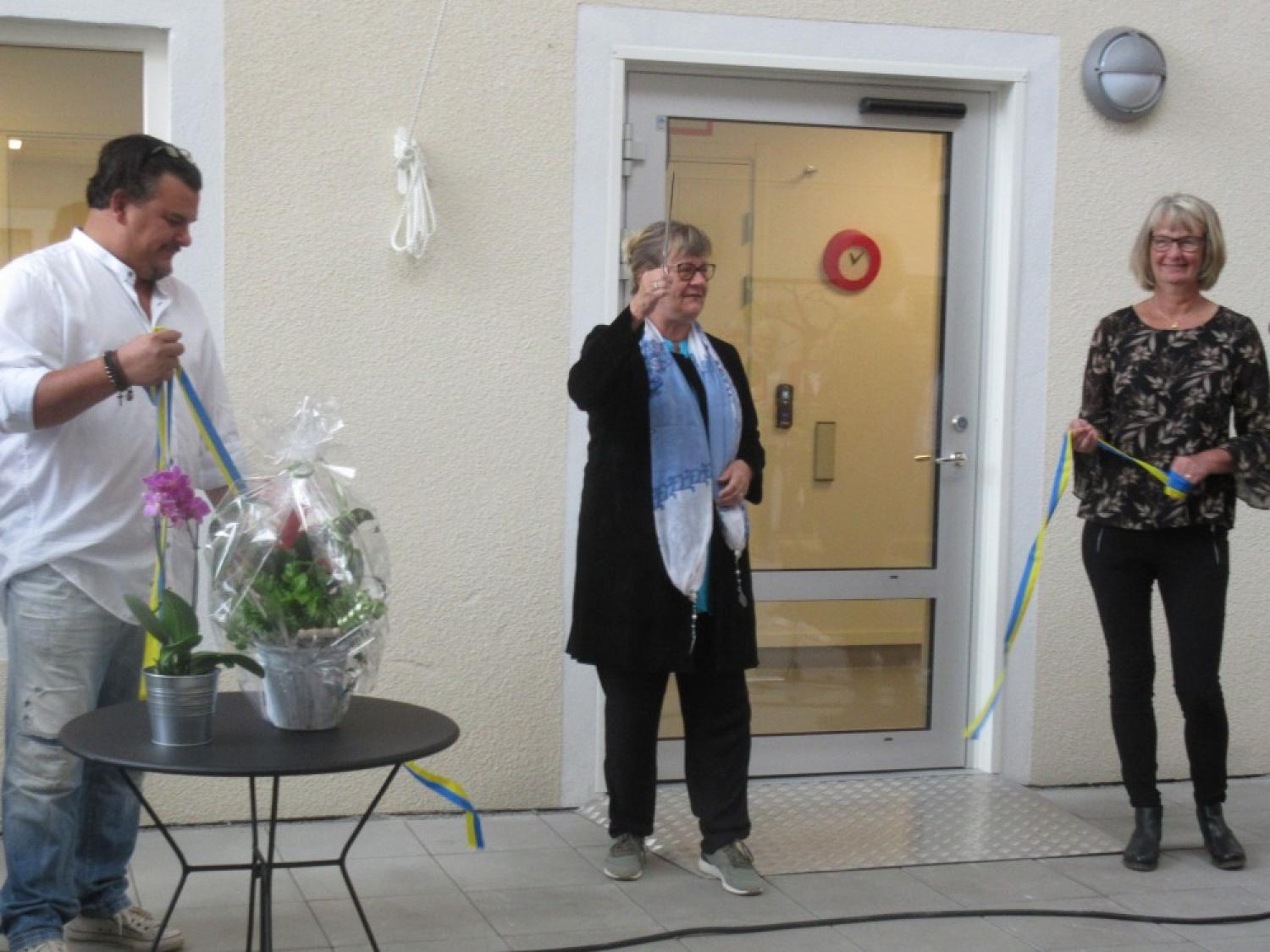 Den högtidliga invigningen av nya delen av Ramundergården samlade fler besökande än beräknat. Social- och omsorgsnämndens ordförande Annette Schön klippte det traditionella bandet.