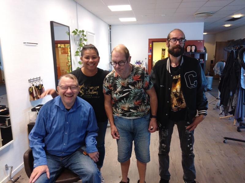 Peter Eriksson, Torgny Larsson och Nicklas Larsson blir stylade på Aungyees salong.