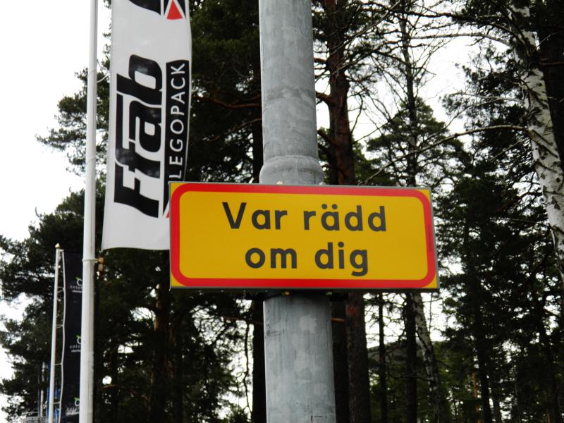 Den första lilla skylten sitter på en stolpe nedanför Midsommarberget med uppmaningen “Var rädd om dig!” En annan sitter vid Drömmarnas tunnel som leder till Centralskolan. På den står det “Gör någon glad!”