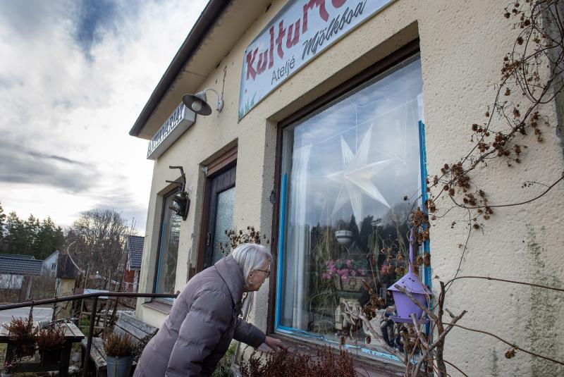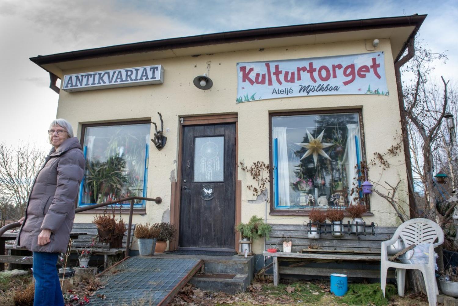 Birgitta Lood på bilden jobbade i butiken som den mördade handlaren ägde. Lokalen har i dag en ny ägare, med en helt annan verksamhet, som inte är kopplad till händelsen på något sätt. Foto: LG Månzon