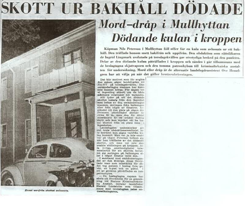 1959 skedde skedde ett mord i Mullhyttan som skakade om samhället rejält. Varför sköts den omtyckte Icahandlaren Nils Peterson till döds? Var det av avundsjuka? Den som höll i vapnet var föreståndaren för Konsumbutiken intill. Konkurrenten, alltså.