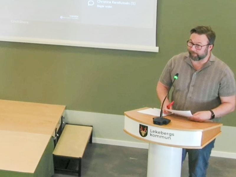 Berth Falk (S), oppositionspolitiker. Foto: Lekebergs kommuns webbsändning.