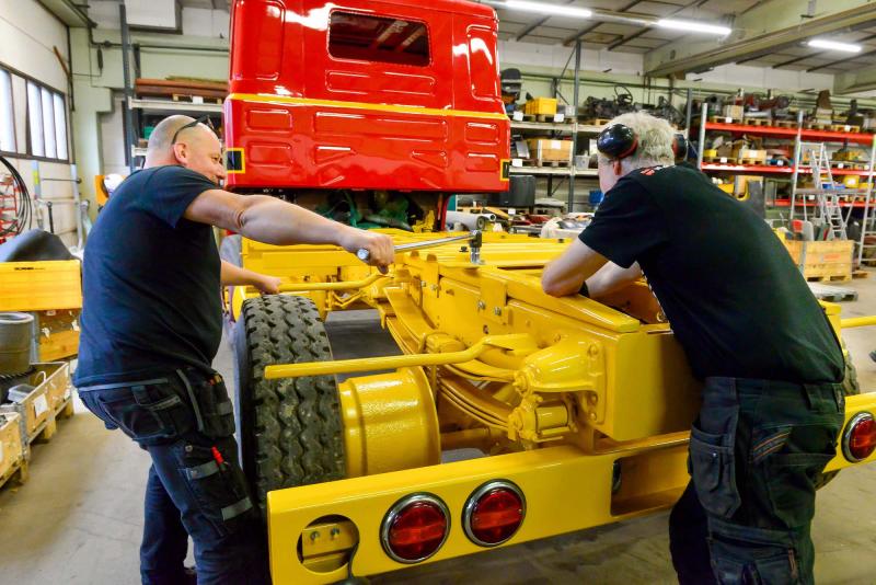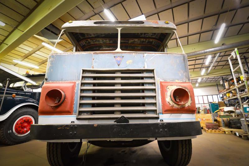 De vanligaste märkena som verkstaden får in är Scania och Volvo. Men nu ställs mekanikerna inför en ny utmaning; att renovera en udda vagn från 1954.