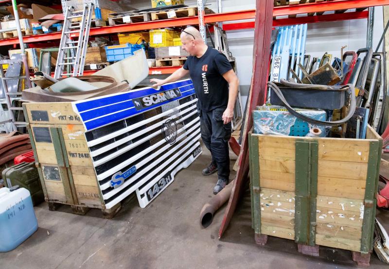 – Vi samlar också på oss lastbilshytter som går att ta delar i från. På det sättet kan vi exempelvis få till de där rundningarna i ett karosshörn som annars är svårt att återskapa. Det som är skrot för andra är reservdelar för oss …