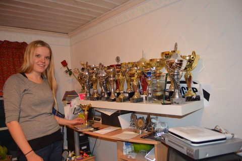 En titt in i Johannas rum visar att hon redan hunnit samla på sig en hel del pokaler. I vintras vann hon en tävling i Gnesta. Och hon segrade även i Autoexperten Rally Cup, som avgjordes under 8 deltävlingar. Runt 16 förare var med och körde, varav tre av dem hela tiden, både killar och tjejer.