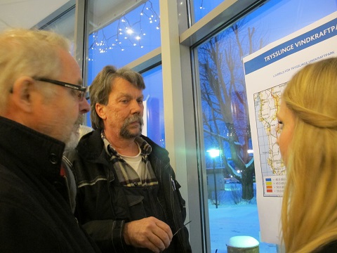 Företrädare för Nordisk Vindkraft deltog på informationen från David och Naturskyddsföreningen. De var märkbart irriterade.