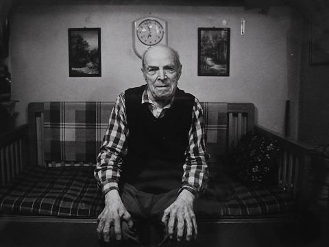 Boktryckare Erik Sättermark hemma på Blindgatan 1978, dit han flyttade som nygift 1916 med hustrun Tilda, kompis med Brita.Genom fönstret i vardagsrummet i samma hus Erik Sättermark kom till som nygift 1916, pekade han ut det tidigare Larssonska skolhushållet mitt emot. Längre bort än så bodde inte Erik. Och tack vare Karin har heminredning varit en het potatis i många år. Och Erik berättar:
