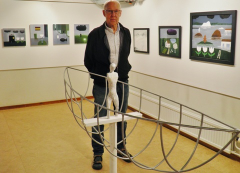 Olle med många utställda verk i Laxå