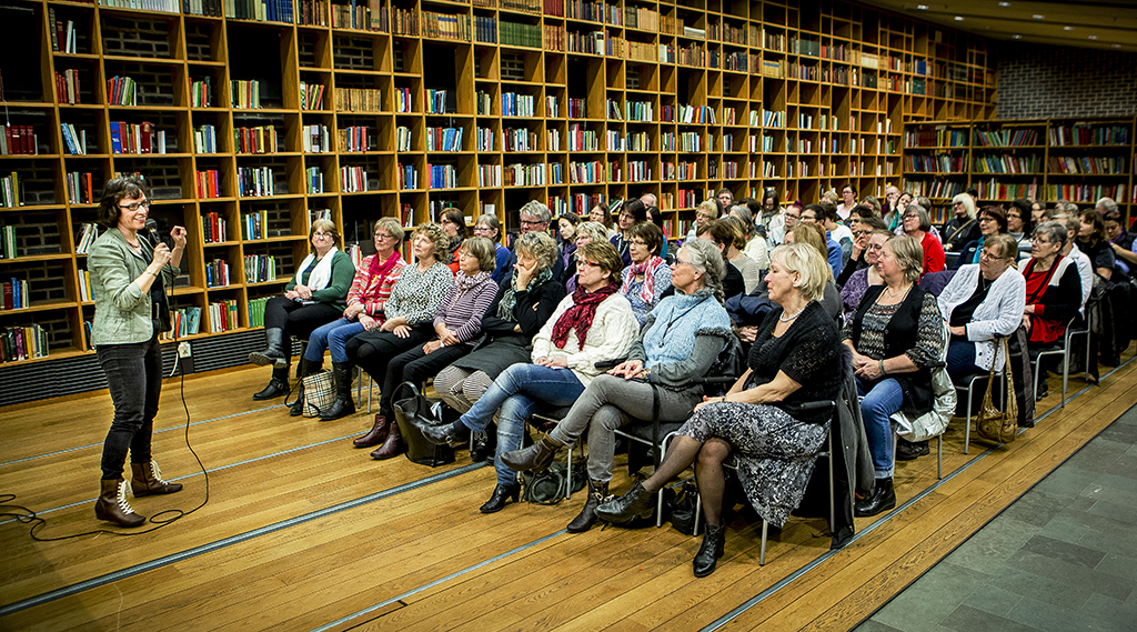 Publiken lyssnade intresserat på Anna-Lenas många anekdoter. – Ett tag höll jag på att bli utbränd så då utbildade jag mig till psykoterapeut. Jag hade en mottagning men inga patienter. Det visade sig att de flesta ville ha vägledning istället, sade Anna-Lena till åhörarna.